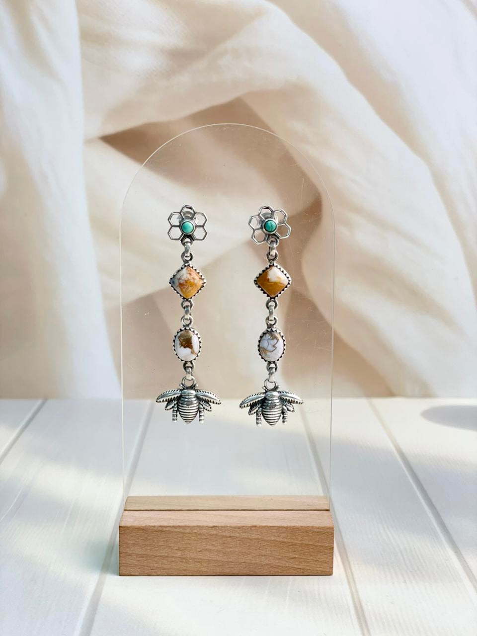 Angel Dahlia Honeycomb & Bees Drop Earrings