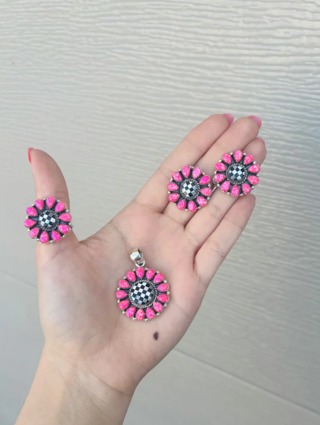 Circle Checkered Stone Sterling Silver Set | PREORDER NOW OPEN